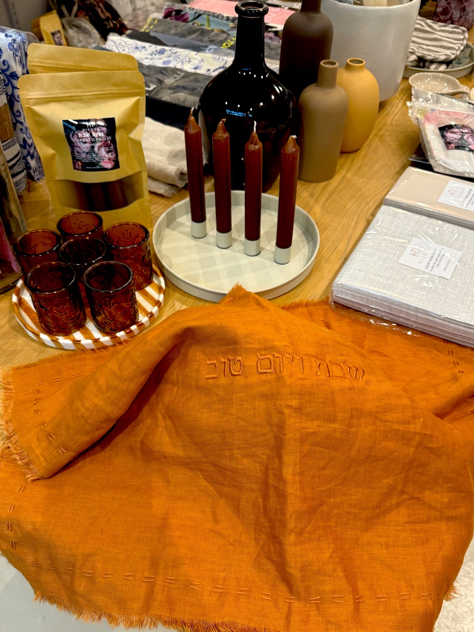 Contemporary embroidered challah cover made from the softest linen. Embroidery reads שבת ויום טוב - Shabbat and Yom Tov. Made with intention and love in the hope of fulfilling Hiddur Mitzvah - the principle of enhancing a mitzvah through aesthetics.