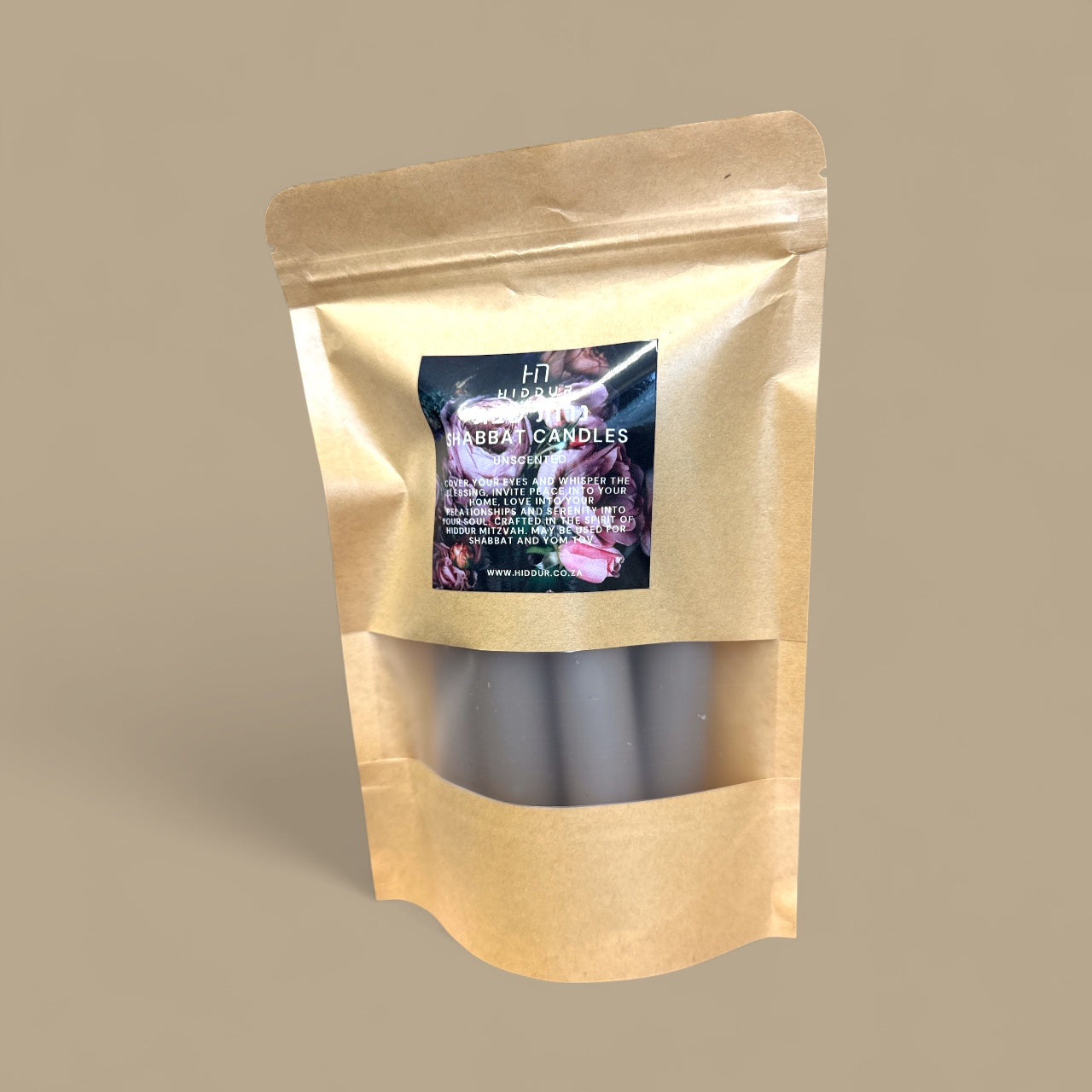 Shabbat candles are available in 7 different colour ways. Each resealable pouch contains 6 of the same colour candle.