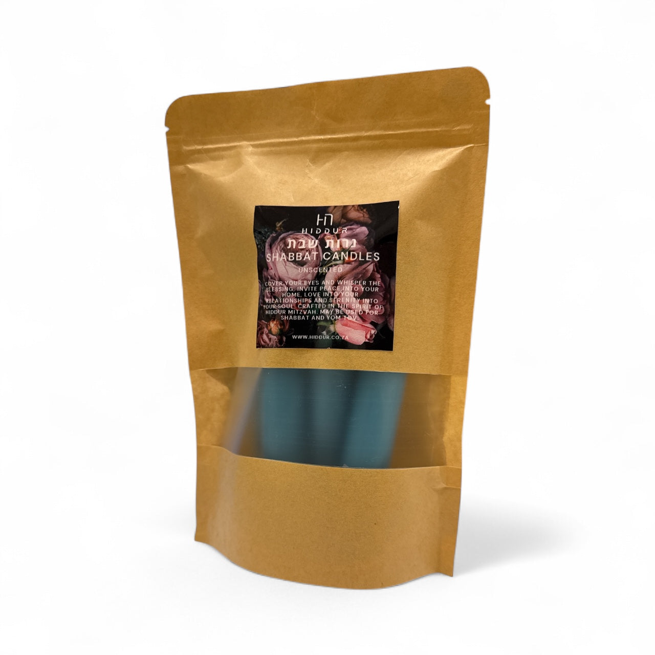Shabbat candles are available in 7 different colour ways. Each resealable pouch contains 6 of the same colour candle.